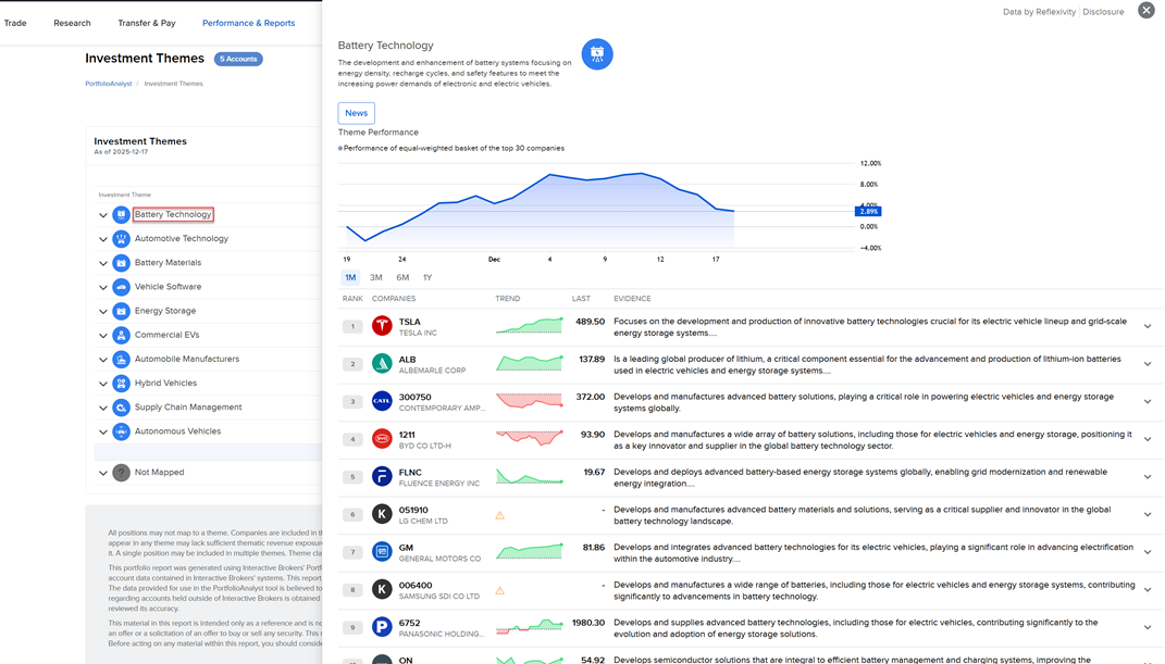 Performance tracking: View Unrealized P&L for each company to monitor theme-based performance