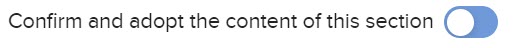 Select the Confirm and adopt the content of this section toggle button to save this information to the report. Note that you must confirm and adopt the content of each section before you can download the FA Commentary Report.