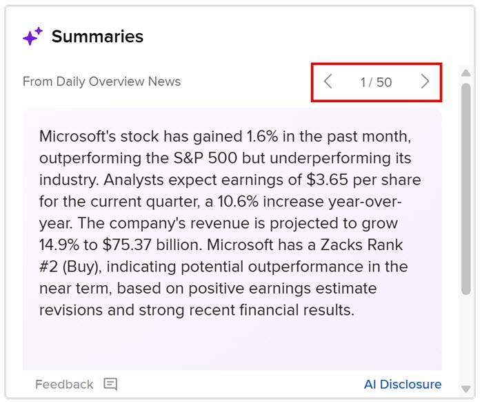 Navigate through the summaries by clicking the arrow icons in the top right corner of the Widget.