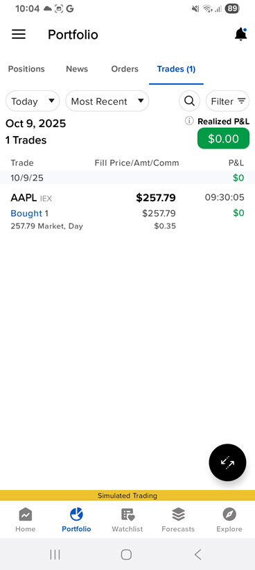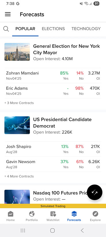 Trade Forecast contracts within the app, without needing to redirect to the external ForecastTrader application.