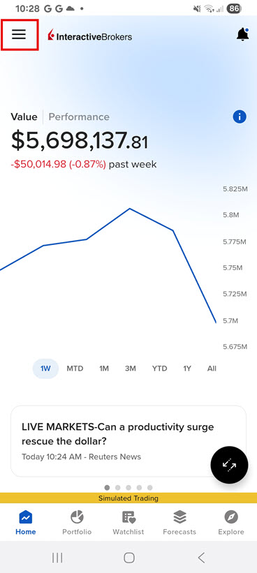Click the 3 lined icon in the top right corner of any GlobalTrader screen.