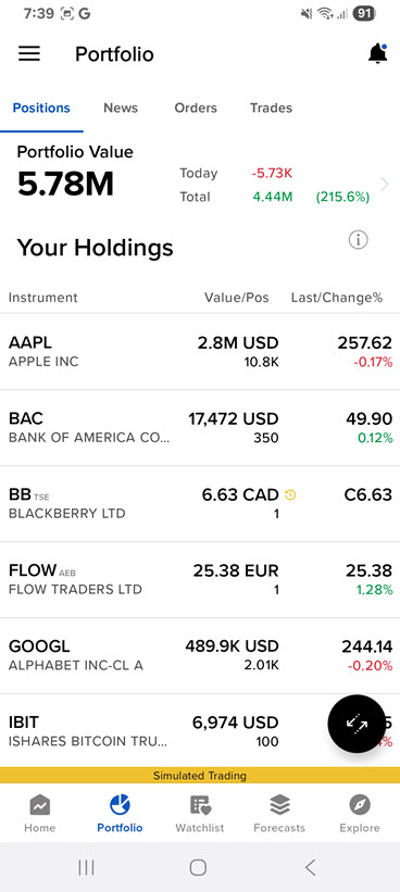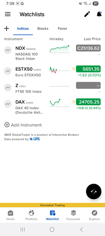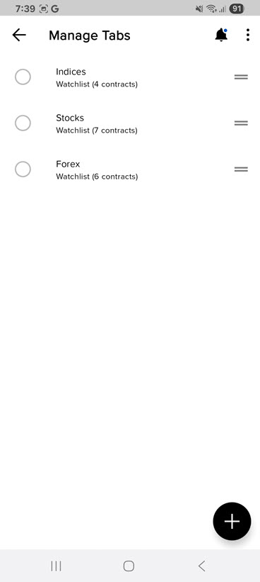 Tracking more instruments. Swipe or long press for access to trading functions