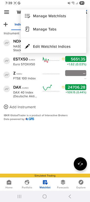 Click the Watchlist tab at the bottom of your screen.
