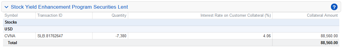 This section displays all securities the account is lending as of the statement date, along with the SYEP rates and collateral amounts.