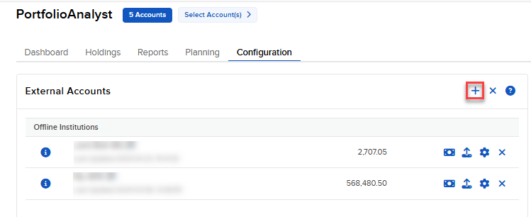 Click the Configuration tab and select the + icon to the right of External Accounts.