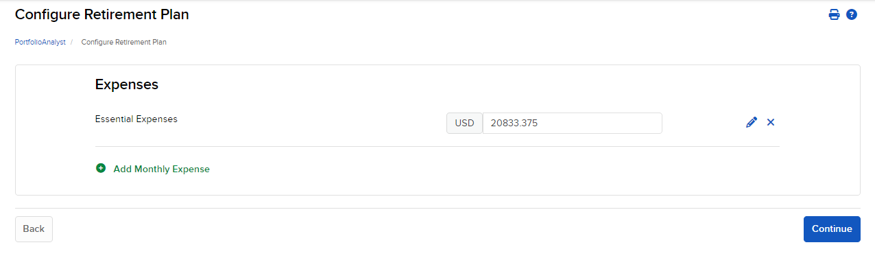 10. The Expenses screen will populate. Click Add Monthly Expense to add any additional monthly expenses you may have.