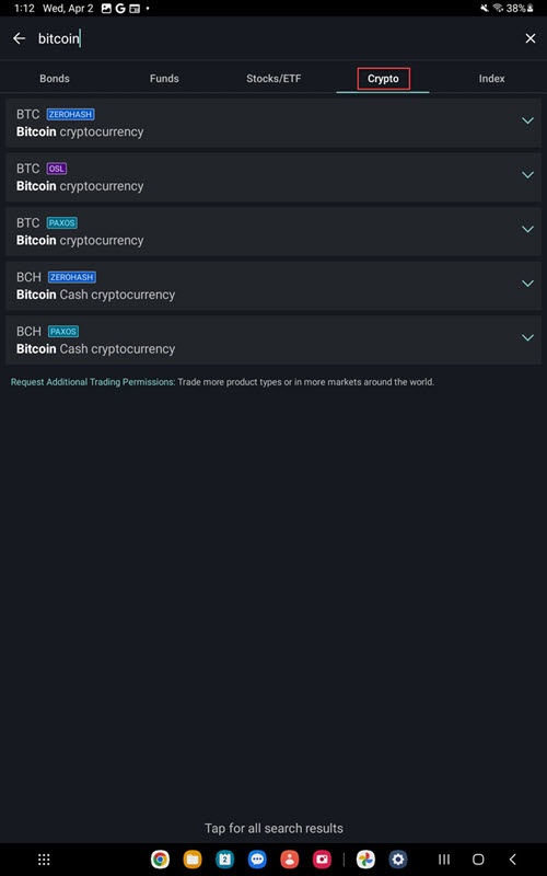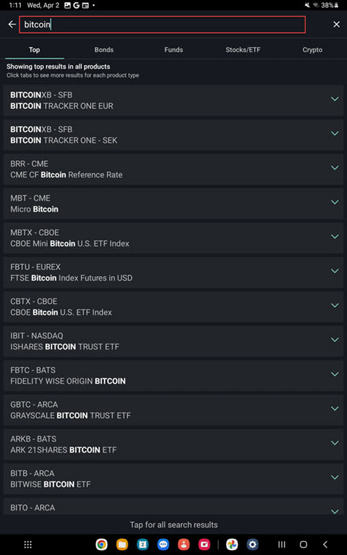 Click the magnifying glass in the top right corner of the IBKR Mobile window and enter a word or phrase in the Search field. Click Enter.