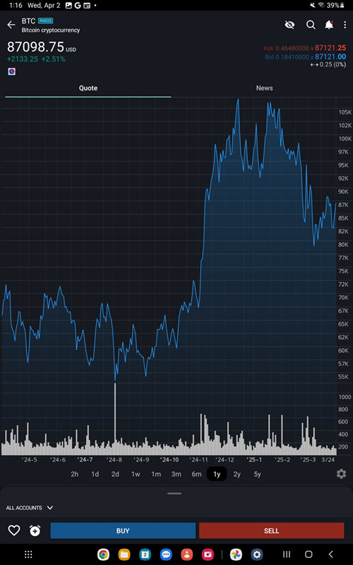 Click the desired product from the list to populate the graph and buy, sell, or add to a watchlist.