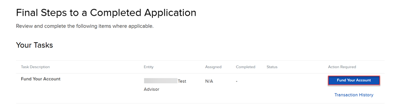 On the final page of the application, click the Fund Your Account button.