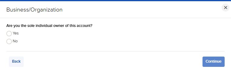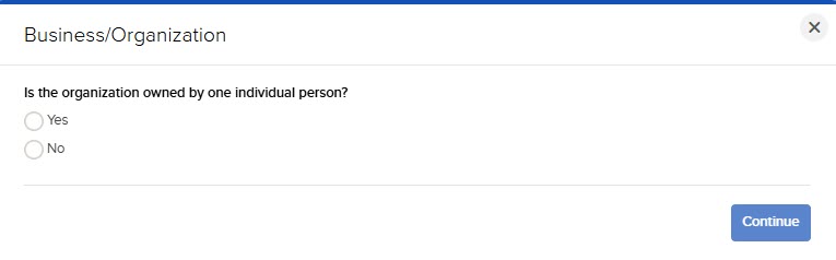 The next page of the application is the About Your Organization section. Fill this out accordingly and press Continue.