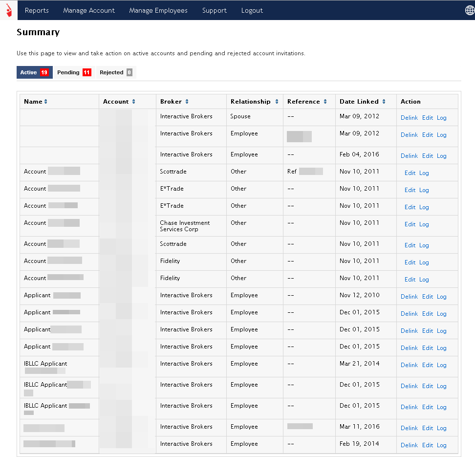 - Click Home. The Employee Accounts is the first page that opens when you log into Compliance Portal.