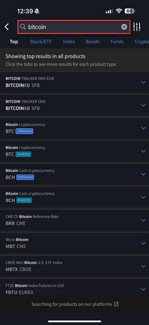 Search for specific trading products by entering the name or symbol. You will be presented with the top results with up to 15 of the most sought-after products in each asset class. Select the asset class tab to return a wider range of potential outcomes based on your search criteria. To navigate to this tool, please take the steps outlined below.
