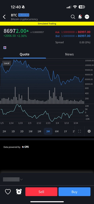 Click the desired product from the list to populate the graph and buy, sell, or add to a watchlist.