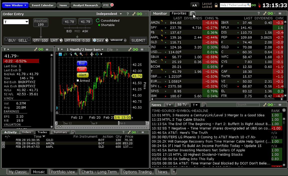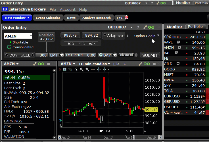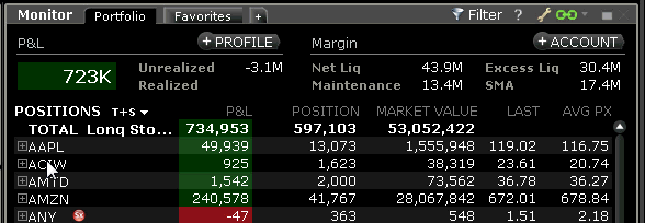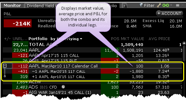 The TWS Portfolio and Account Windows now display spread/combination complex positions in a single line as a unique entry, identified by the named strategy when applicable. Click the expand box next to the spread to show individual legs.