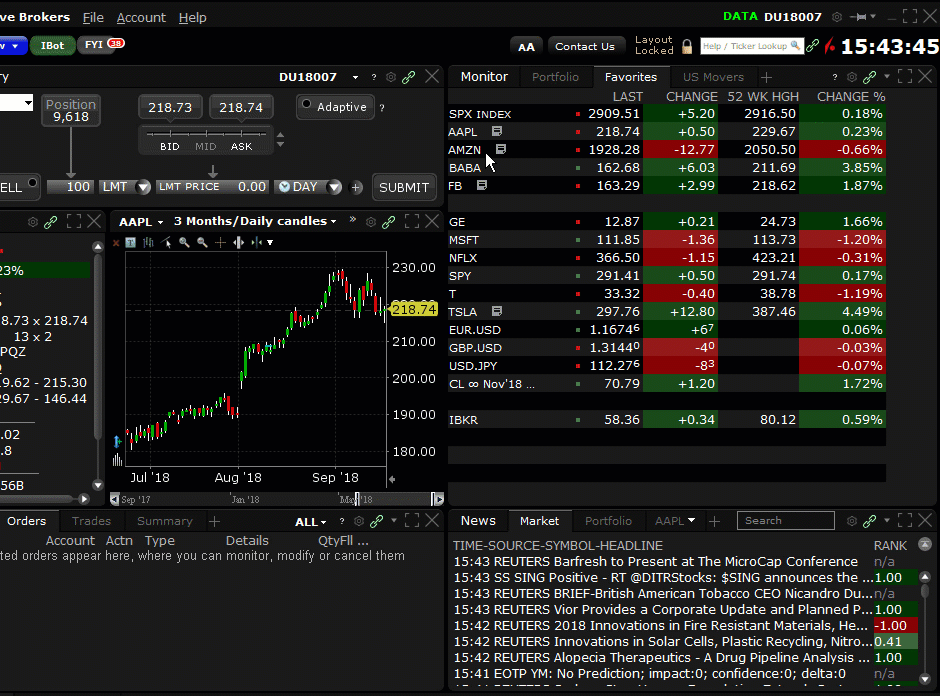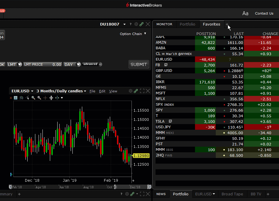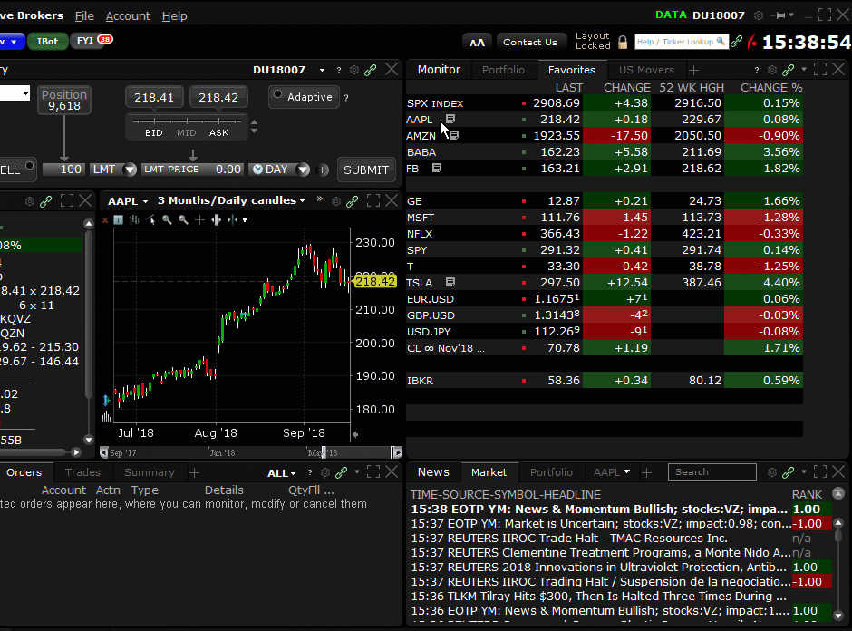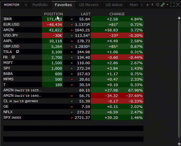 Many columns in your TWS Portfolio now support "continuous sorting." This feature automatically re-sorts positions in your Portfolio when an event occurs in your account that changes values in your portfolio, resulting in the need to re-apply the sort order. For example, if you elect to sort your Portfolio continuously by Position (either ascending or descending), when you buy or sell an asset the sort is automatically reapplied to your portfolio to keep the selected sort order up-to-date.