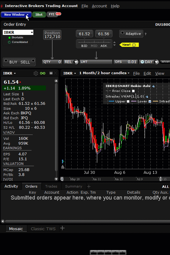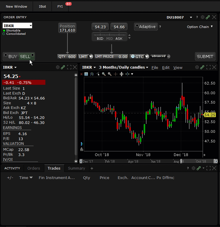We are pleased to introduce the MidPrice order type for smart-routed stock orders. MidPrice is designed to split the difference between the bid and ask prices, and fill at the current midpoint of the NBBO - or better. To create this order, simply choose MidPrice from the order entry Order Type field. Set an optional Price Cap to define the highest (for a buy) or lowest (for a sell) acceptable price for the order.