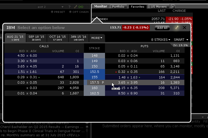 To add Implied Volatility data columns to a TWS window, hold your mouse over an existing column name until the Insert Column command appears. Click Insert Column and scroll to the Options column group. Hold your mouse over a title in the group to see the tooltip definition. Click a title to add the column to your window.