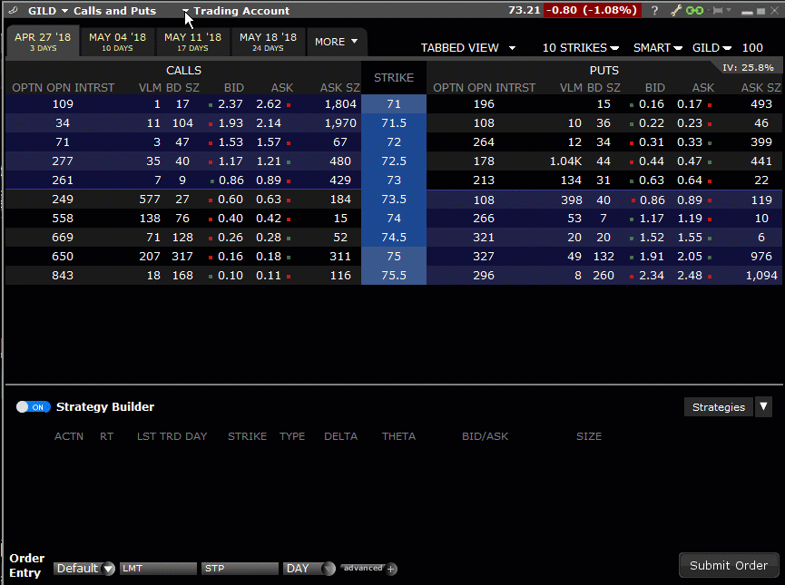 - Put - Peg to midpoint of bid and ask implied volatilities (Imp. Vol for bid + Imp Vol. for Ask/2)
