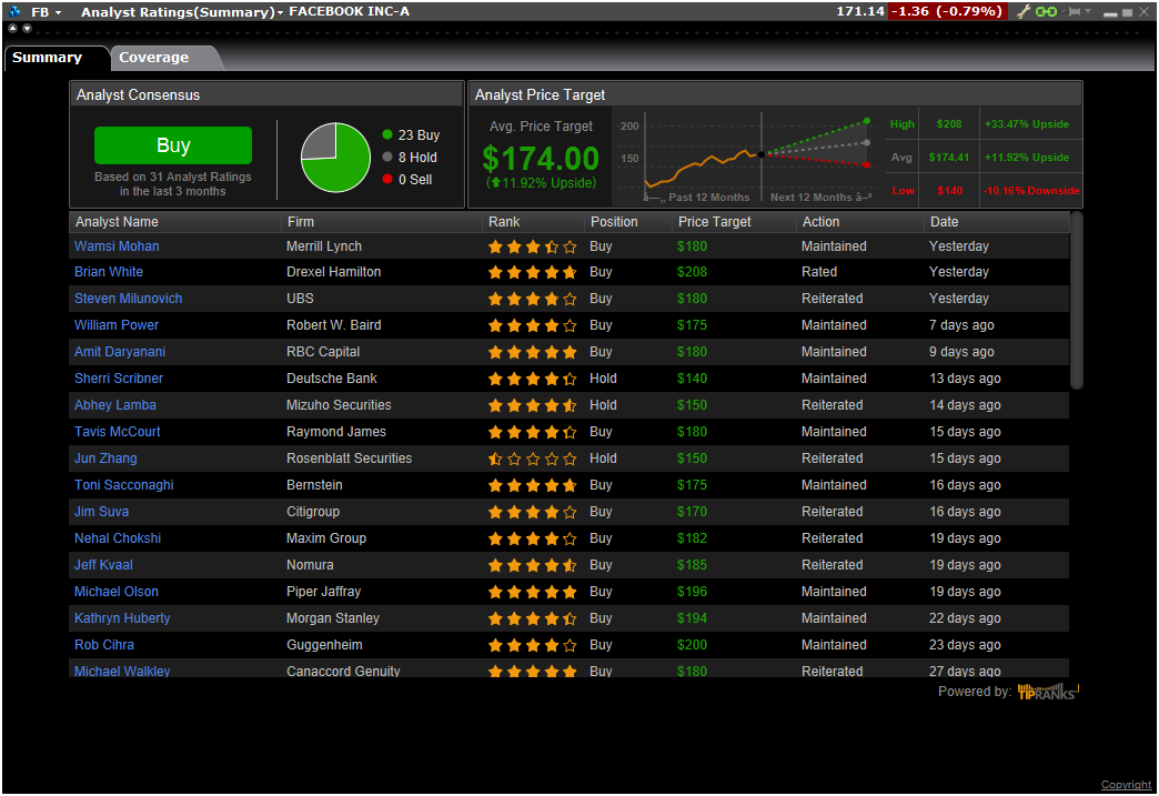 We have recently added several new fields available throughout TWS and categorized under Fundamentals - Independent Ratings that allow you to view individual ratings issued by various research providers. Only providers to which you subscribe will be available. Additionally, these new ranking will be available in the Portfolio Builder "Rank the stocks in the Universe by..." list.