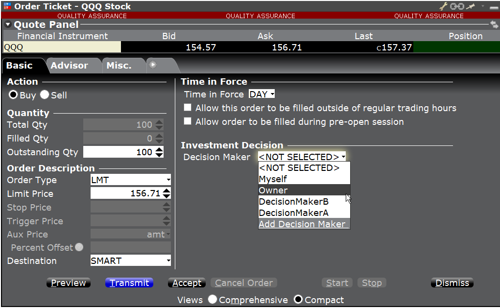 Additionally, TWS now includes fields for manual order route and cancel times (when applicable) for institutional users who are required to report such information under FINRA Rule 7440.